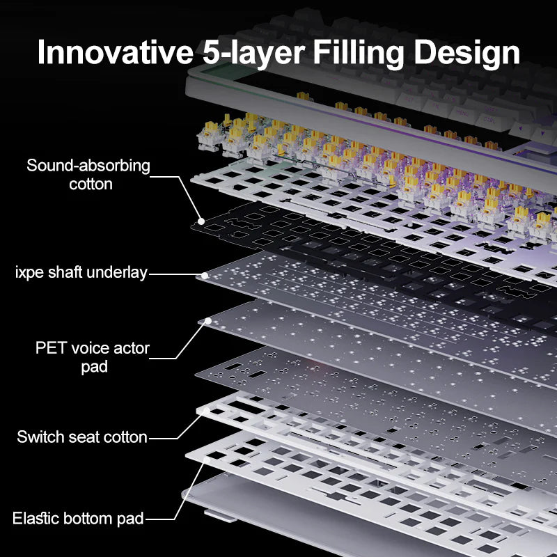 - Soft Gasket structure for a quieter, more comfortable typing experience.