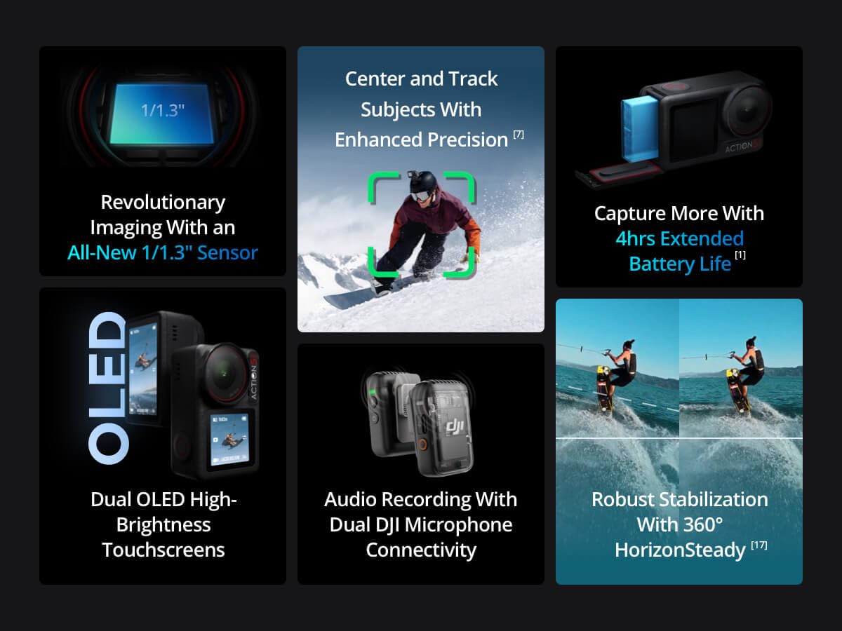 - Professional Audio - Capture clear audio with DJI Microphone Connection—and get audio from DJI Mic 2 transmitter directly without needing a receiver. Perfect for moto vlogging, skiing, solo-vlogging.