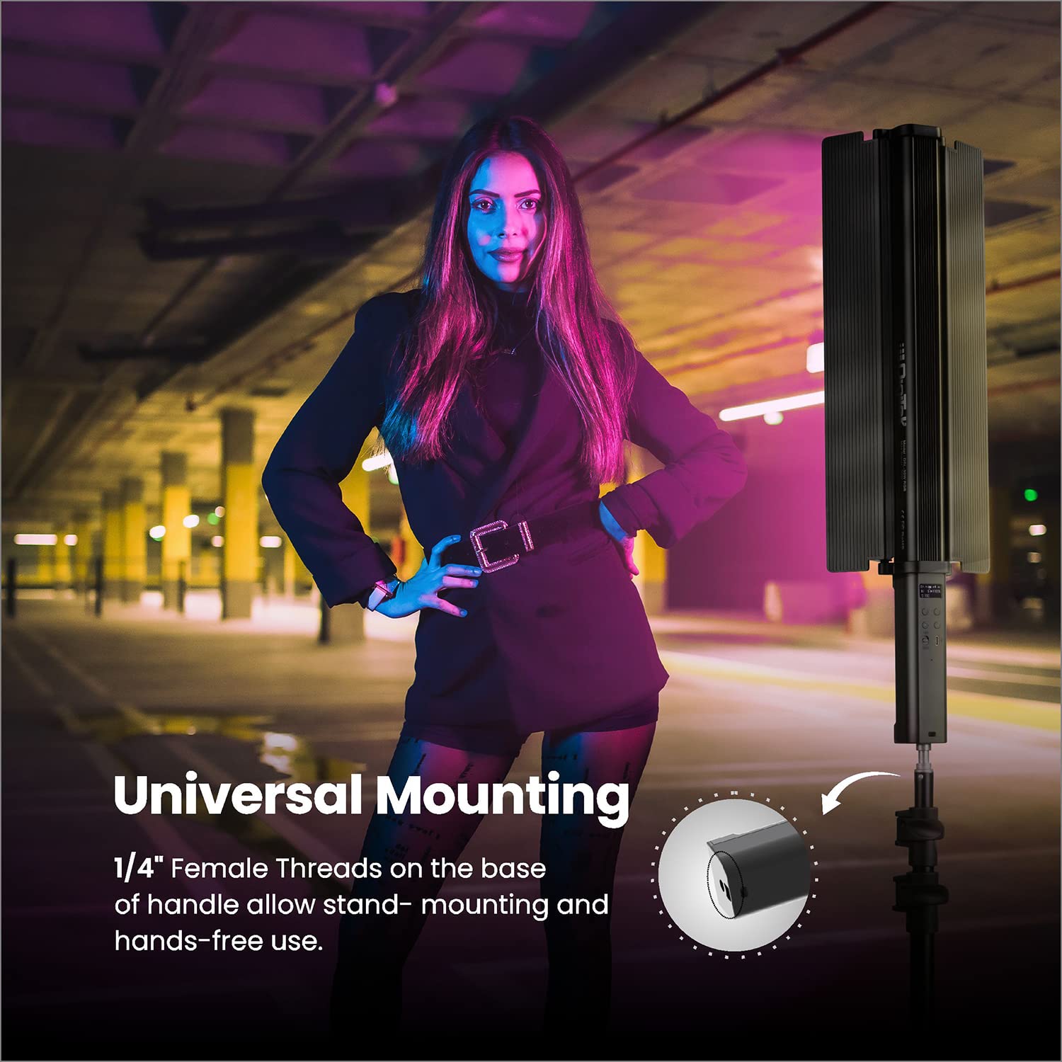- Universal mounting : 1/4" Feaale threads on the base of handle allow stand-mounting and hands-free use