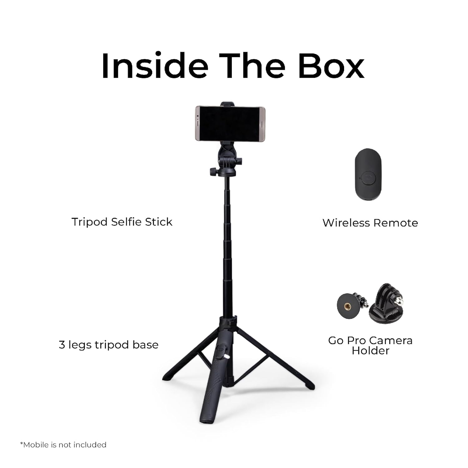 DIGITEK DTR-525 SS 160 CM Long Tripod Selfie Stick with Wireless Remote, Aluminum Rod with 3 Legs Base, 360° Head, GoPro Adapter, 7 Section Adjustment - Compatible with Phones & Action Cameras
