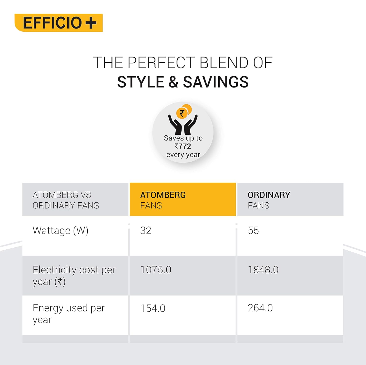 - Super Energy Efficient BLDC Motor: Consumes only 32W at the highest speed.