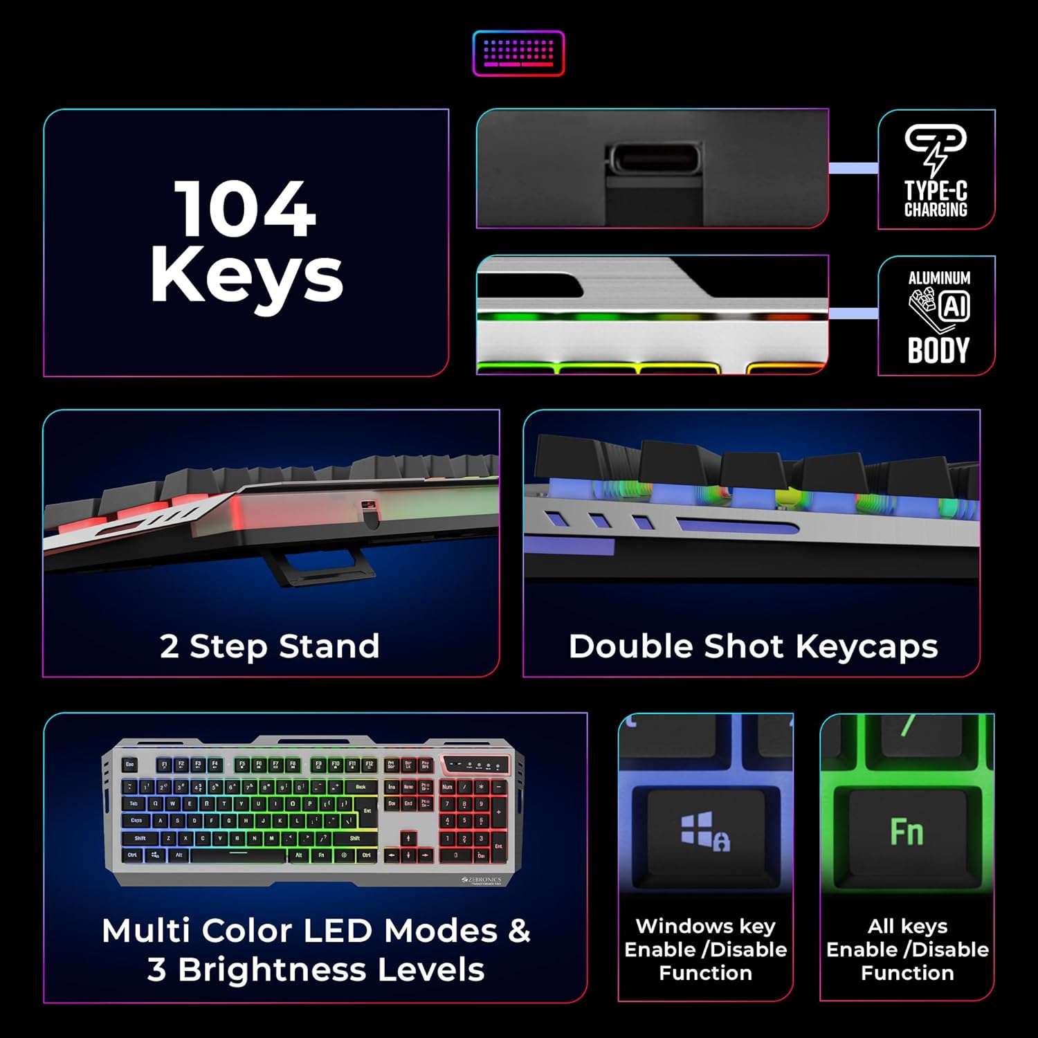 - [Outlook]: The ZEB-Transformer Pro keyboard has an aluminum body and a 2-step stand to enhance comfortability