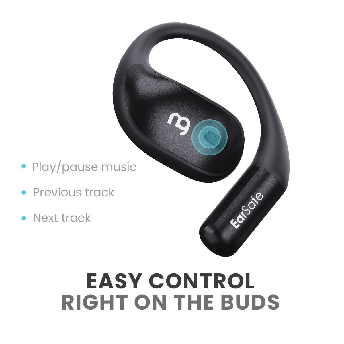 NG EarSafe OpenBuds Wireless Open Ear Earbuds with Hook Design Quad Mic ENC for Clear Calls 12x17mm Drivers Premium Silicone Finish