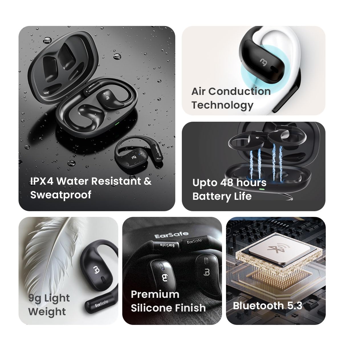 - Open-ear air conduction design for extended wear: Enjoy long-lasting comfort with our open-ear design that keeps you aware of your surroundings.