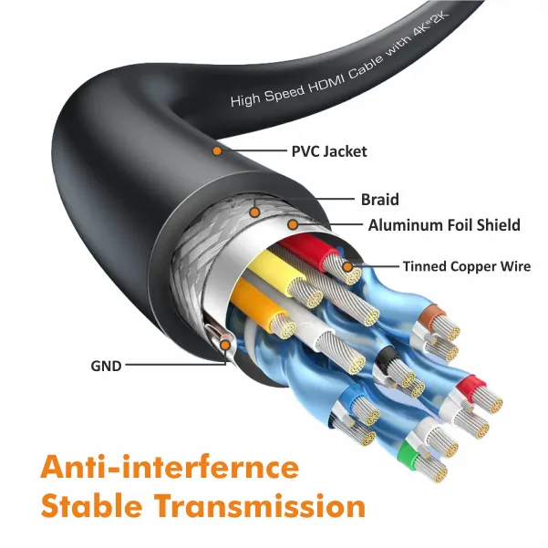 The moulded strain-relief design minimizes stress on connectors, preventing wear from frequent plugging and unplugging, while the high-quality PVC jacket ensures flexibility and protection. Internally, the cable features bare copper conductors (24–30 AWG) and braid + Mylar shielding to reduce electromagnetic interference (EMI), ensuring stable and noise-free data transmission across lengths up to 30 meters.