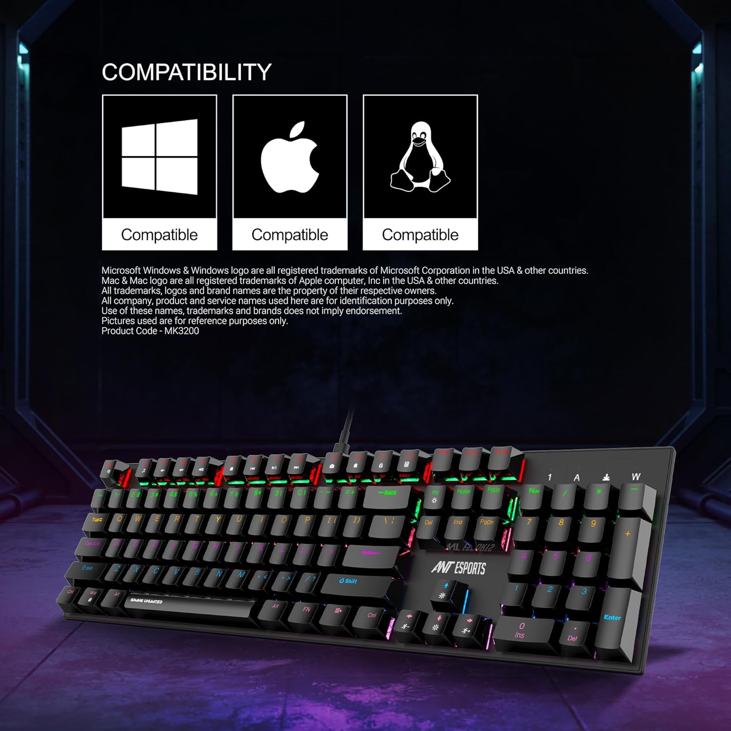 - Package Contents: Ant Esports MK3200 104-Key Mechanical Keyboard, User Manual,Warranty Card