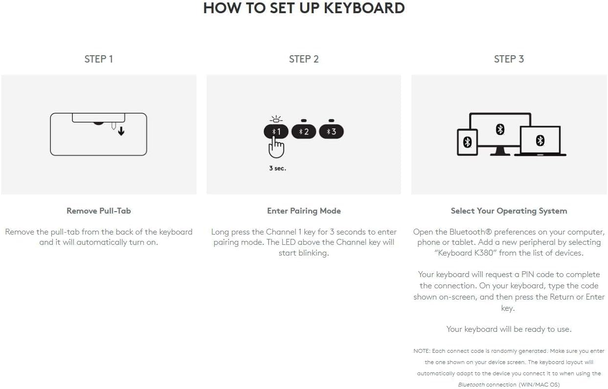 - Multi-Device Connectivity : Pair up to 3 wireless devices at once with the simple touch of an Easy-Switch button. Easy-Switch lets you connect any Bluetooth device that supports an external keyboard, including an iPhone, iPad android tablet or Windows PC. Palm Rest : No