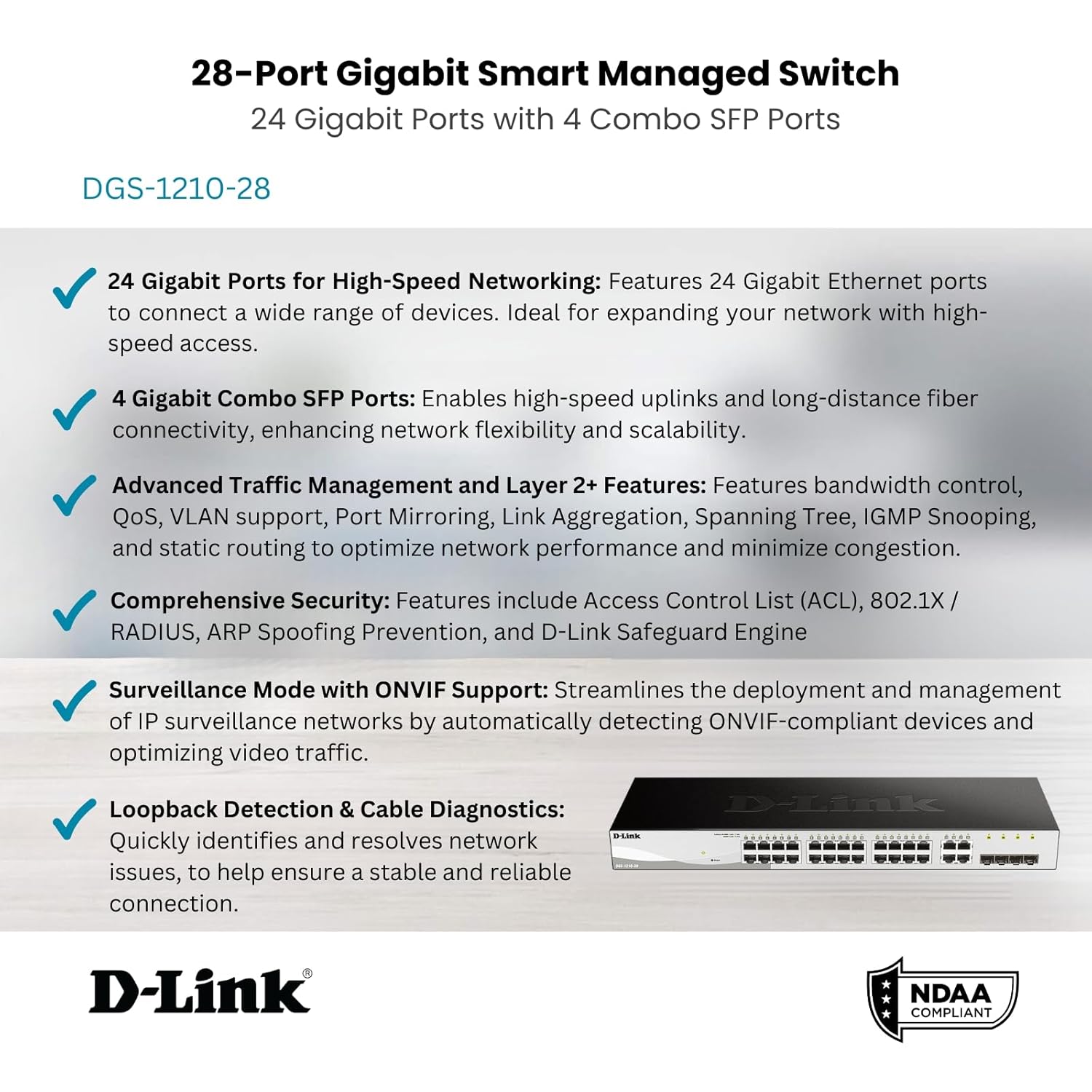 D-Link Desktop LAN Switch 28 Port Gigabit Smart Managed DGS-1210-28