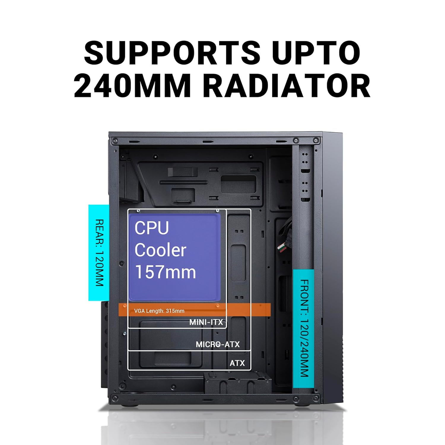 • Fan Support : 2 x 120mm Front and 1 x 120mm Rear