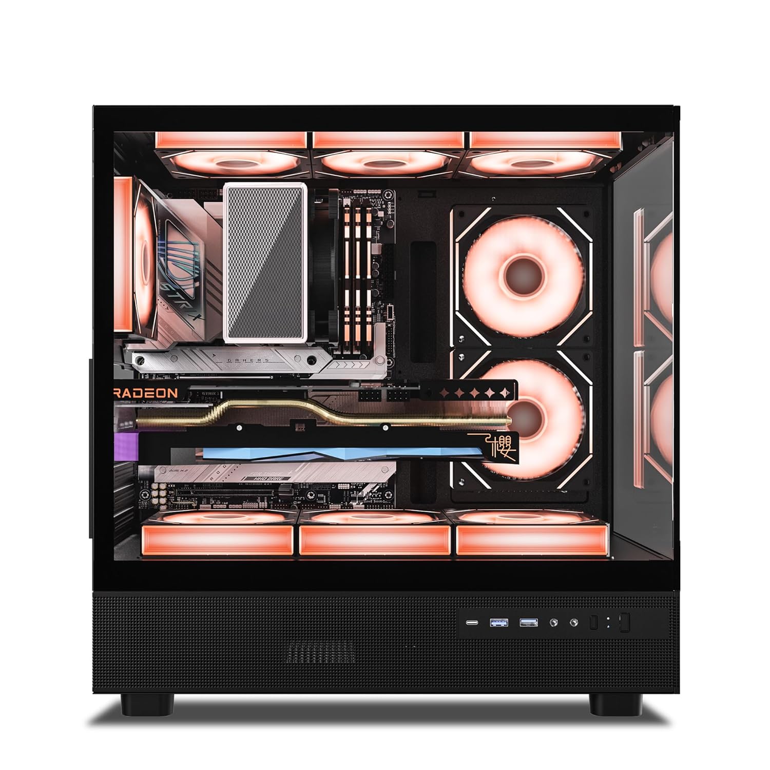 - Black, ATX Mid-Tower, 435 x 230 x 456 mm, Tempered Glass Front & Side Panel