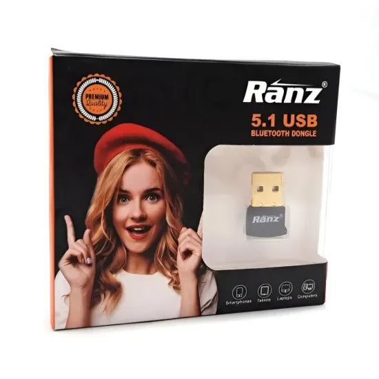 Ranz USB To Bluetooth Dongle Adapter 5.1 offers upgraded wireless connectivity with Bluetooth 5.1 technology, ensuring a stronger signal, better range, and stable pairing with audio devices and peripherals. Designed for easy plug-and-play use, it is compatible with desktops and laptops for seamless wireless communication.