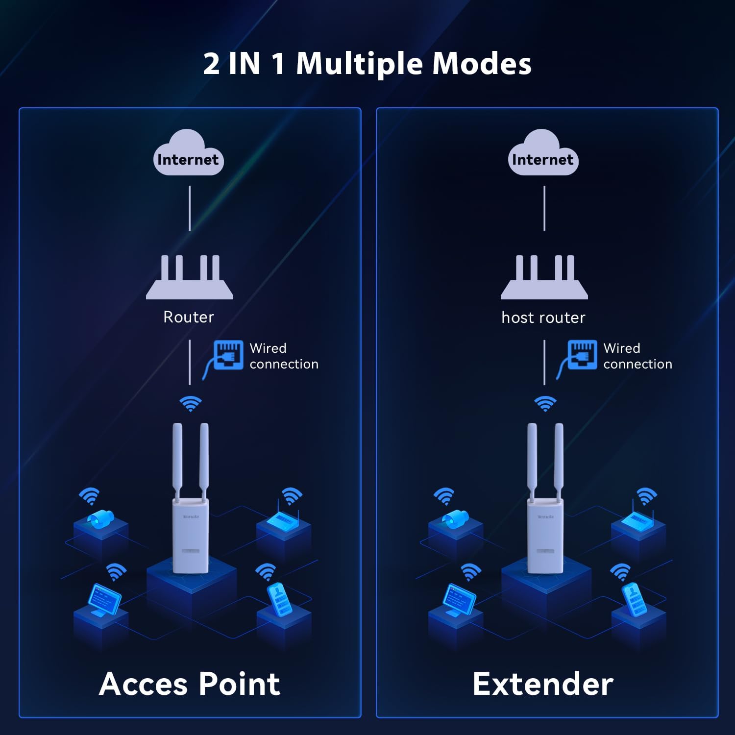 - 𝐄𝐱𝐭𝐞𝐧𝐝𝐞𝐝 𝐂𝐨𝐯𝐞𝐫𝐚𝐠𝐞: Equipped with two 5 dBi high-gain omni-directional antennas, it ensures a broader and more reliable coverage area to meet diverse connectivity needs.
