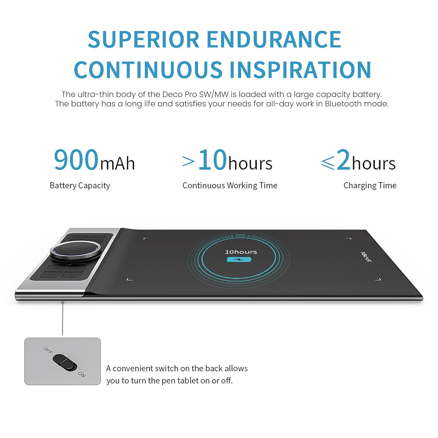 - ✅ [BLUETOOTH WIRELESS CONNECTION]: Deco Pro MW pen tablet is equipped with advanced Bluetooth v5.0 chips for reliable and lag-free wireless connections. The ultra thin tablet body houses a large battery offering uninterrupted usage of over 10 hours on a single charge.