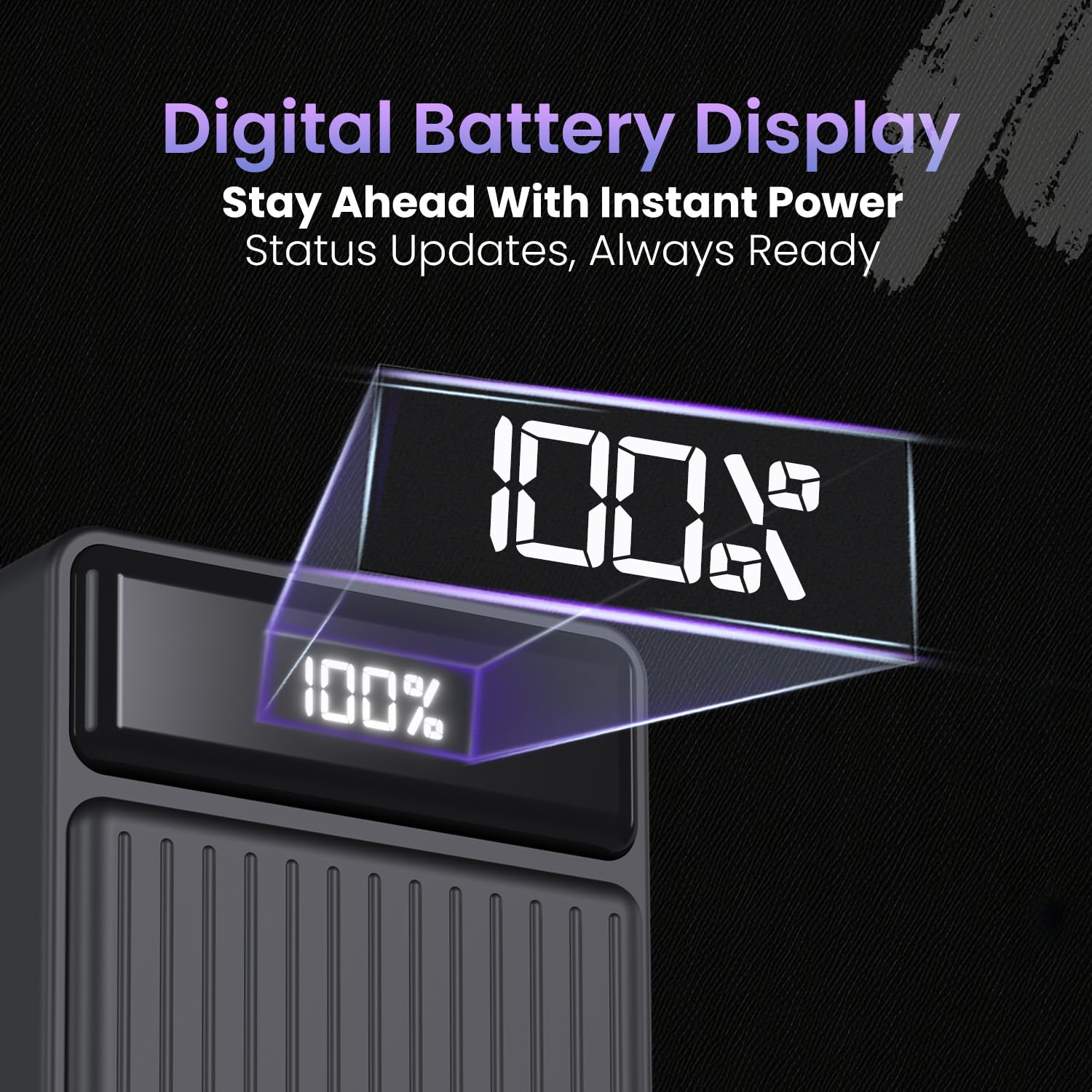 - LED Battery Display: Featuring a transparent plastic casing with an LED battery Display, this 20000mAh fast-charging power bank keeps you updated on both its power level and your device's charge status.