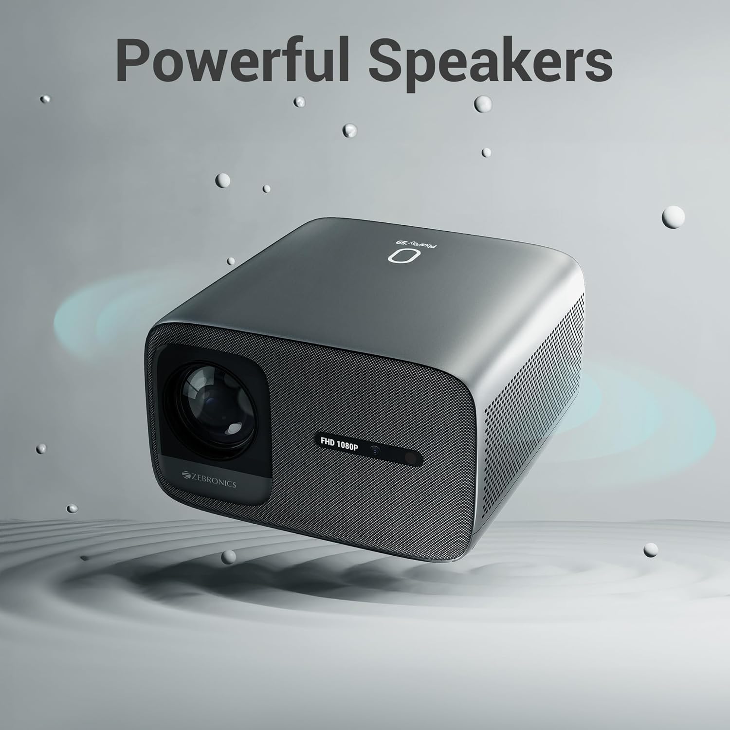 ZEBRONICS PIXAPLAY 59, Smart Projector, 1080p, 20000 Lumens, 200" Screen Size, Auto