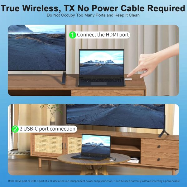 With advanced image processing and transmission technology, this wireless HDMI extender ensures smooth, stable, and reliable signal delivery, providing clear, uninterrupted audio and video even over extended distances. Its design offers an economical and efficient solution for extending HDMI signals without the hassle of complex cabling.