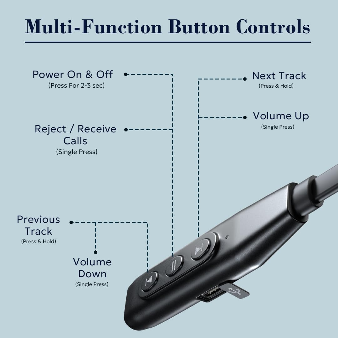 - Long Playback Time: Enjoy uninterrupted music playback of upto 40 hours or talk time throughout the day without worrying about frequent recharging.