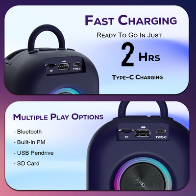 - 12W Powerful Sound: Enjoy crystal-clear audio with deep bass, perfect for any party or gathering
