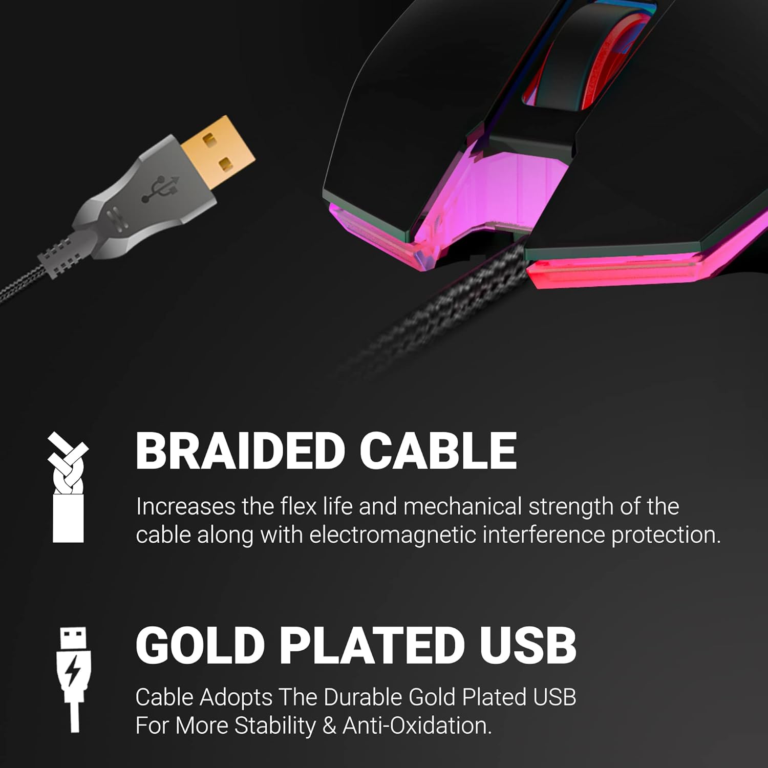 - GM50 Comes with braided Cable, Cable Adopts the durable gold plated USB for more stability & Anti-Oxidation.