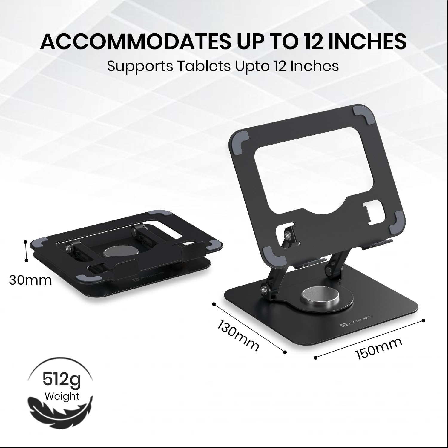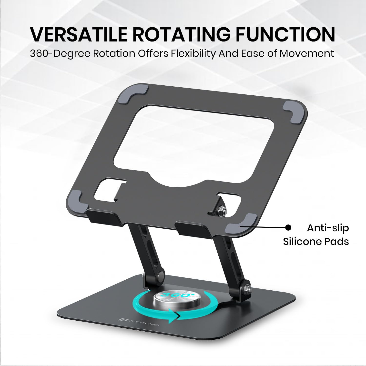 Portronics My Buddy A1, Metal Tablet Stand, 360° Rotating Base, Height & Angle Adjustable