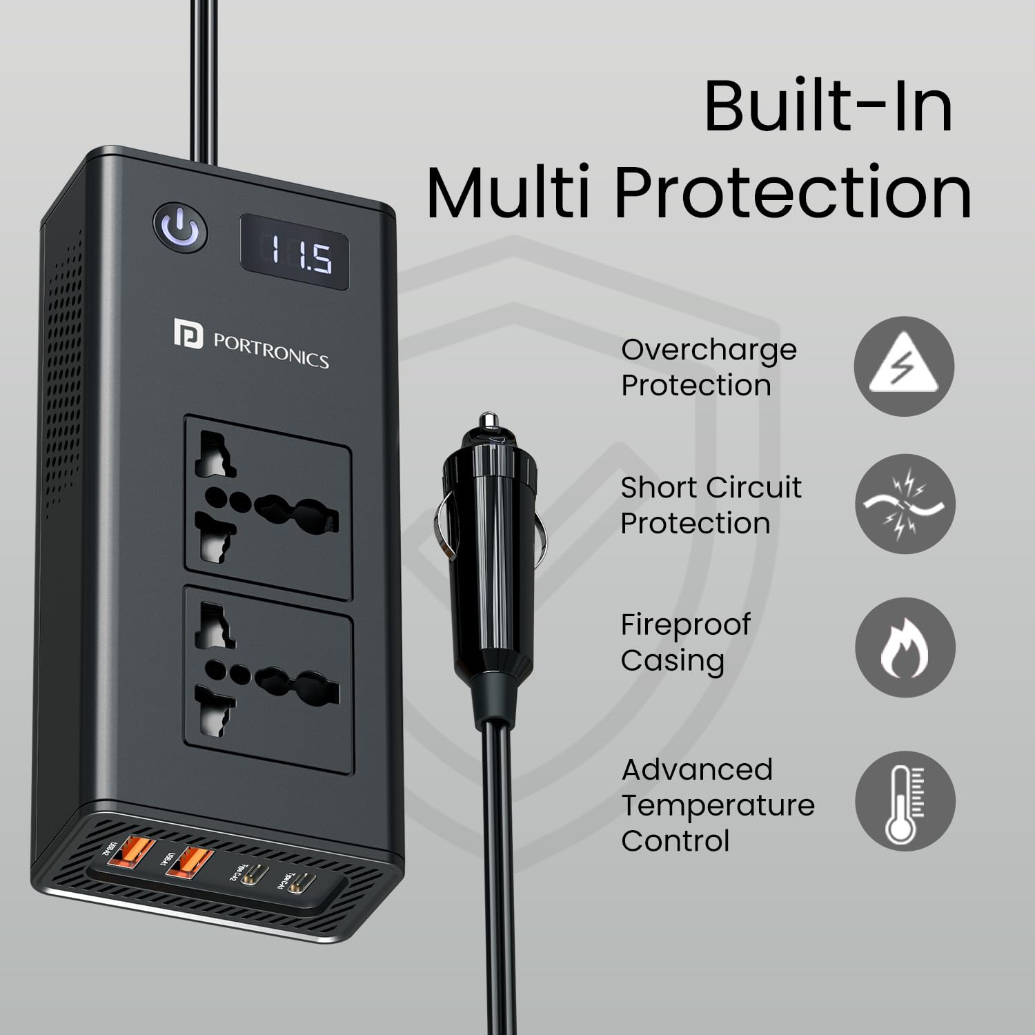 - 200W Car Inverter for All Essentials: The Zaptor delivers up to 200W output, letting you power laptops, camera, small appliances and travel devices directly inside your car. Perfect for long drives, work trips and outdoor use.