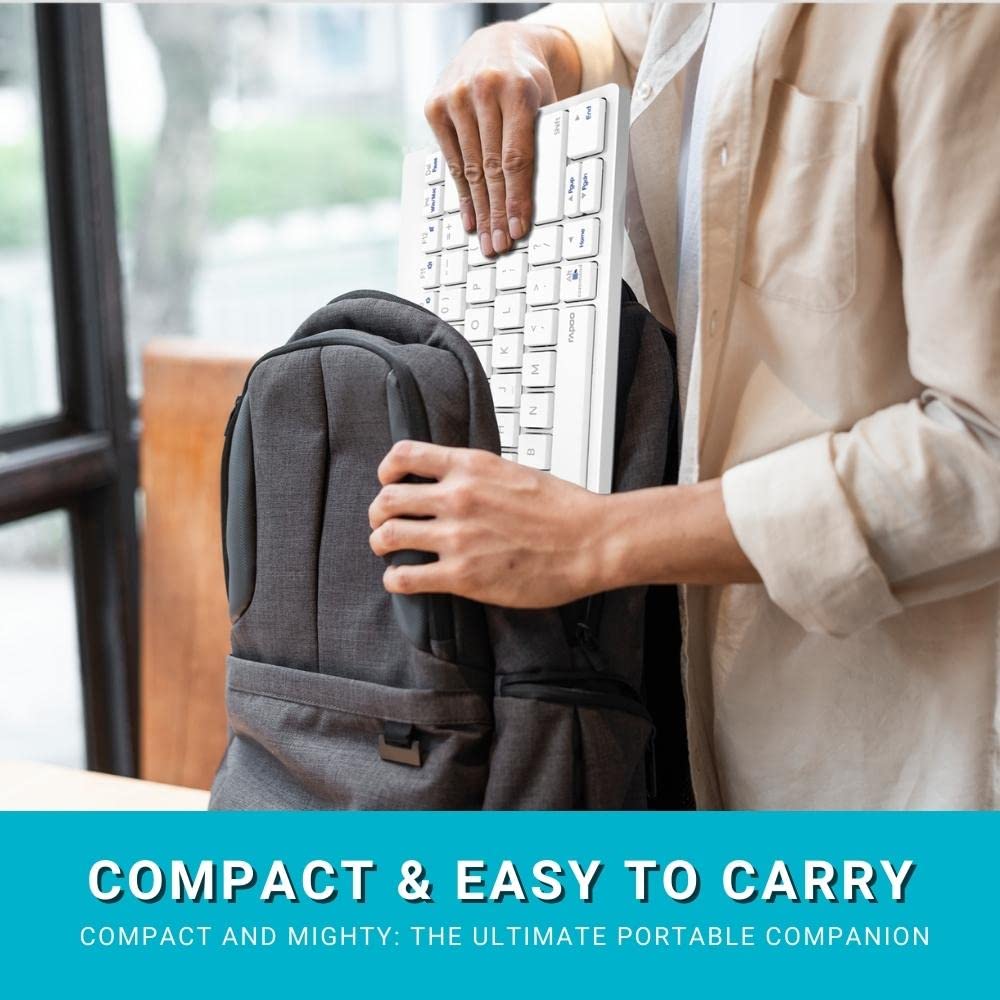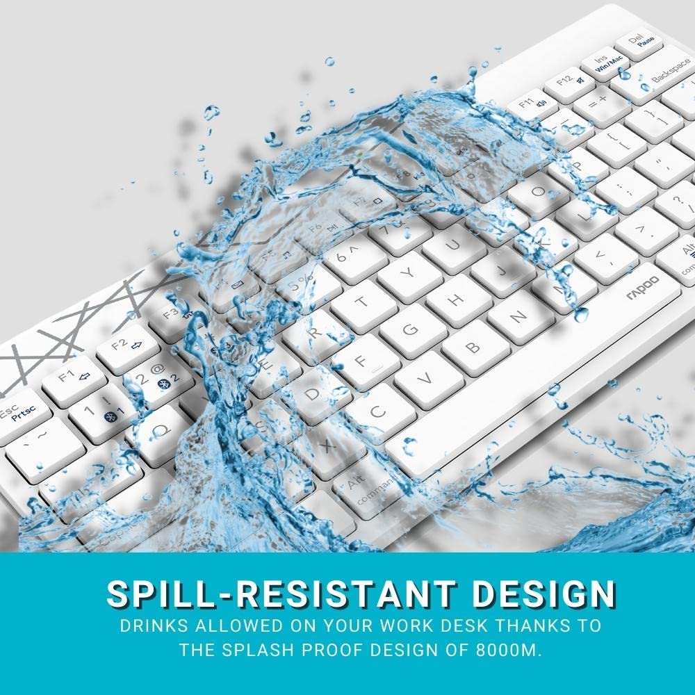 Rapoo 8000M Multi-Mode Keyboard & Mouse Bluetooth 3.0/4.0 Wireless 2.4 GHz 1300 DPI Combo-White