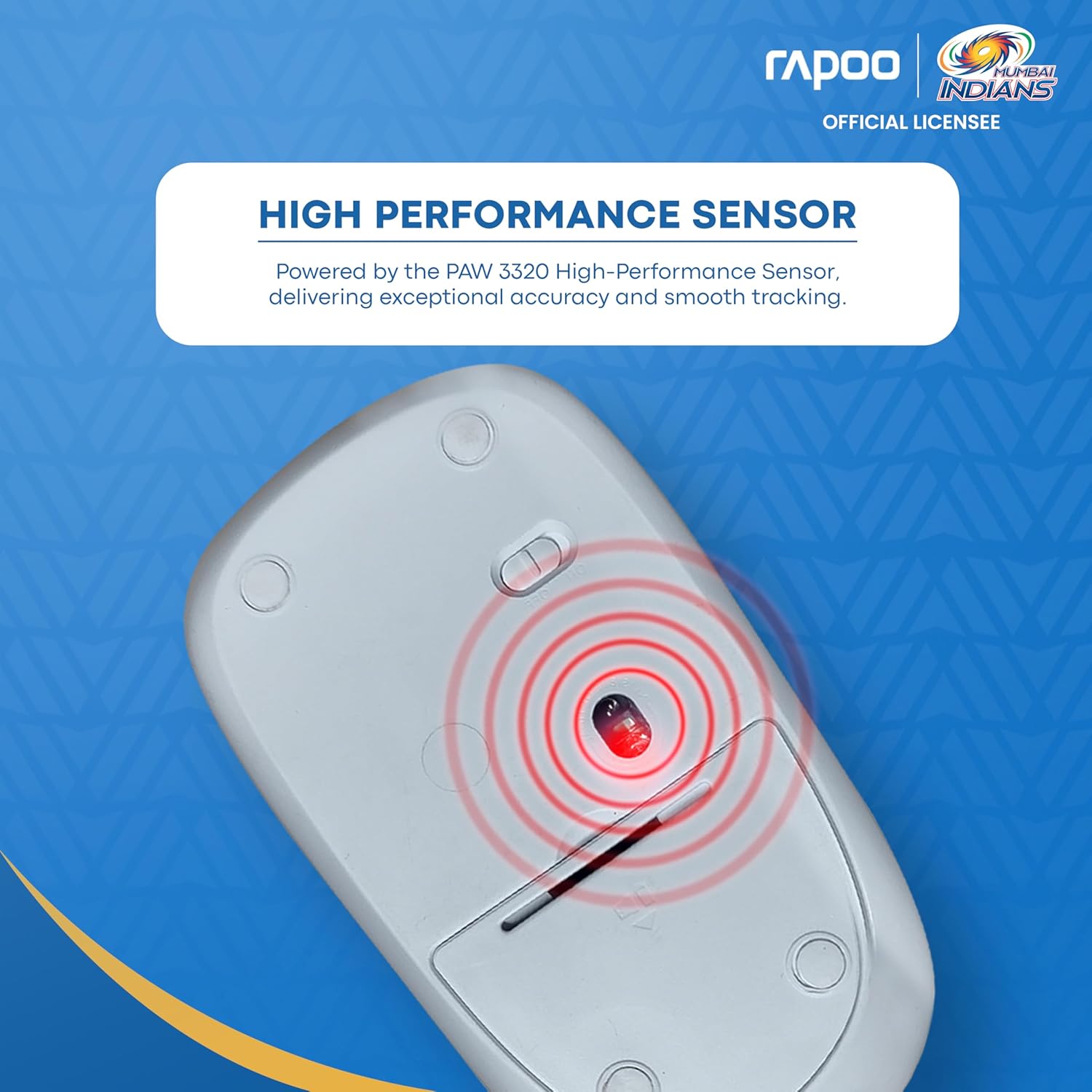 Rapoo M200 Mumbai Indians Wireless Mouse – Ambidextrous, PAW 3320 Sensor, Bluetooth Blue