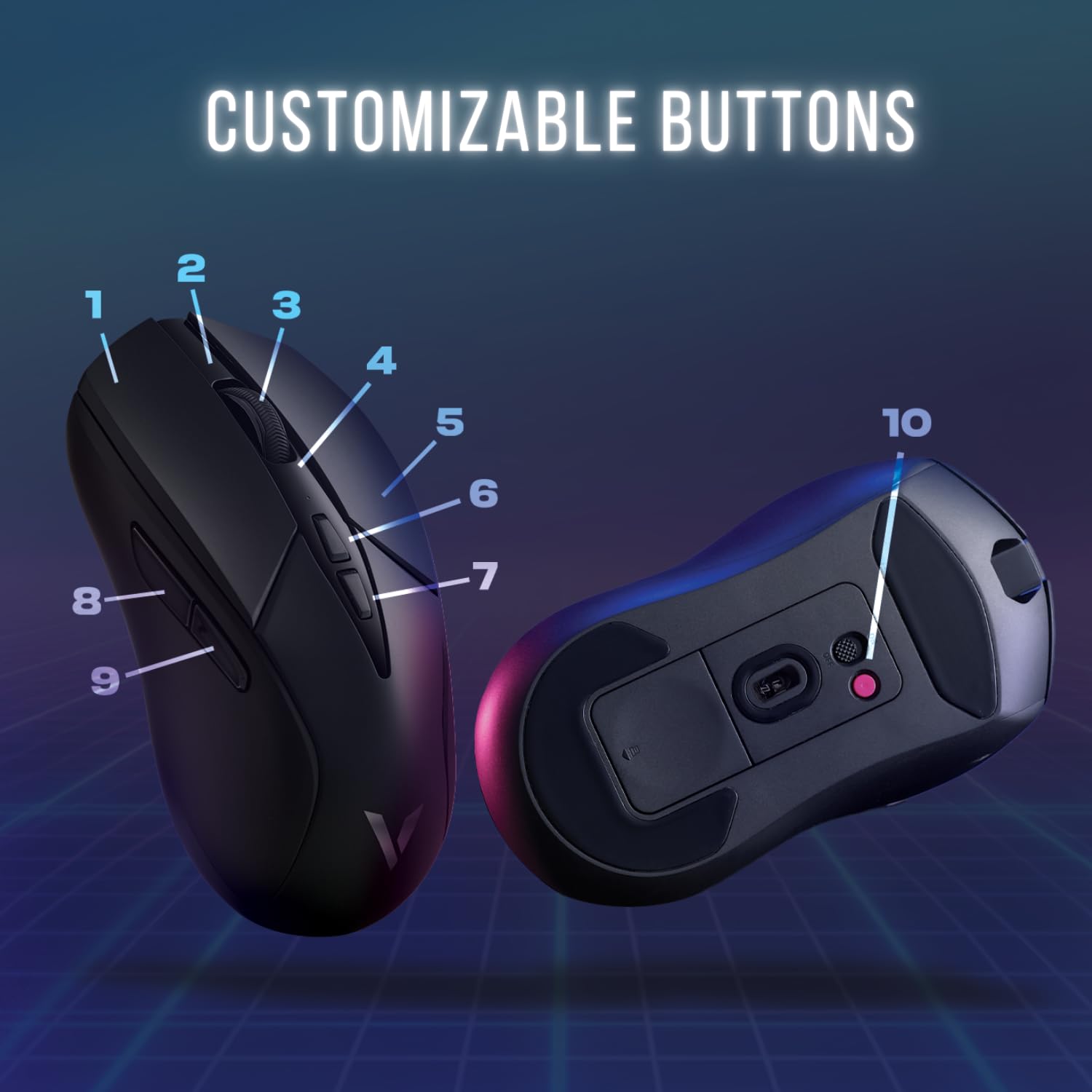 • V+ wireless Gaming technology:V300SE gaming mouse wireless with minimal latency and input lag while you play, thanks to our unique V+ technology. With intelligent wireless transmission chip which makes your mouse control smoother and more precise.