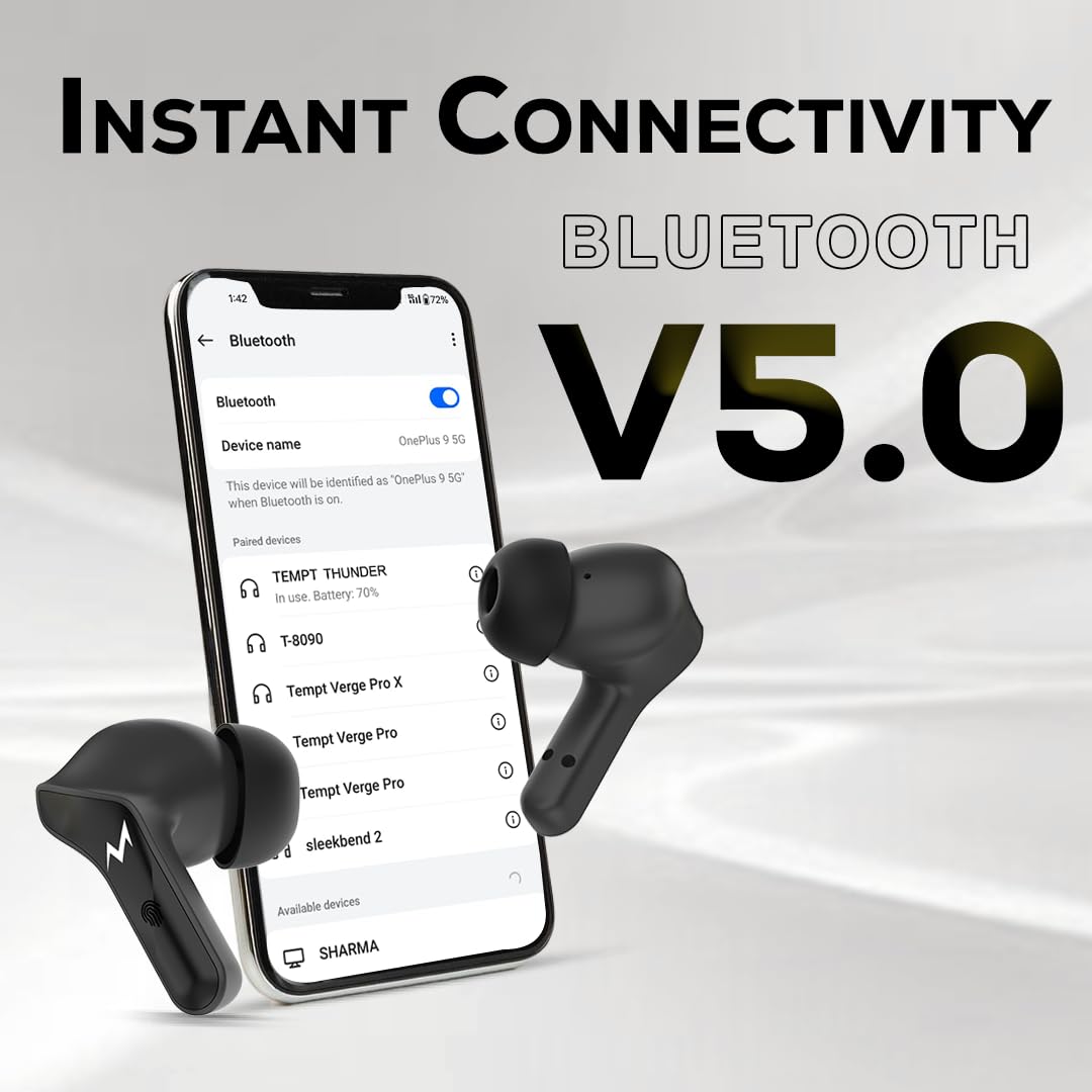 - Convenient pairing and gaming mode: BLiNK fast pair technology allows for easy, automatic pairing with your device, ensuring a stable connection every time you use them. Plus, Tempt Thunder wireless earpods come with FURY mode, which provides low latency for the best gaming experience.