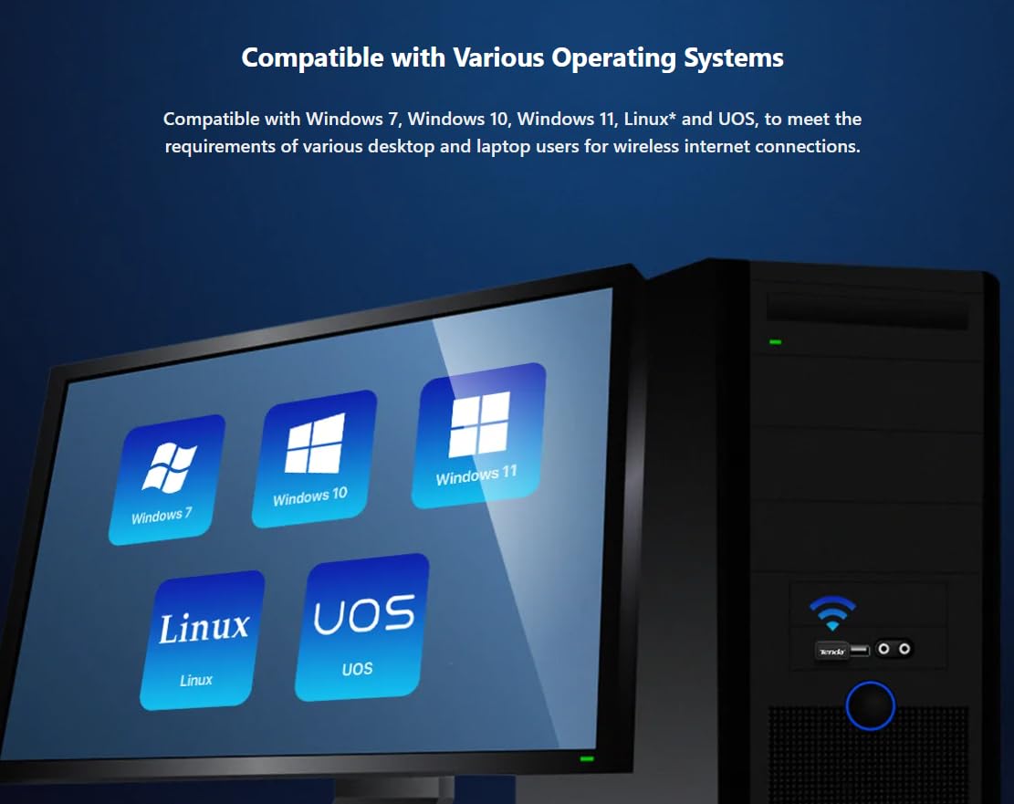 steps.Therefore,you do not need to manually install the driver with a CD-ROM or a file downloaded from the internet. It is compatible with many operating systems concluding Windows 11, Windows 10, Windows 7, and Linux and UOS, to meet the requirements of various desktop and laptop users for wireless internet connections.