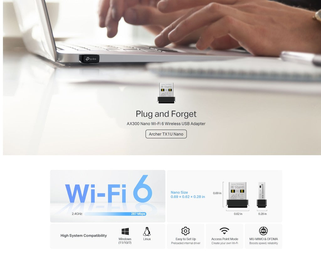 TP Link Archer TX1U Nanao AX300 Nano Wi-Fi 6 Wireless USB Adapter