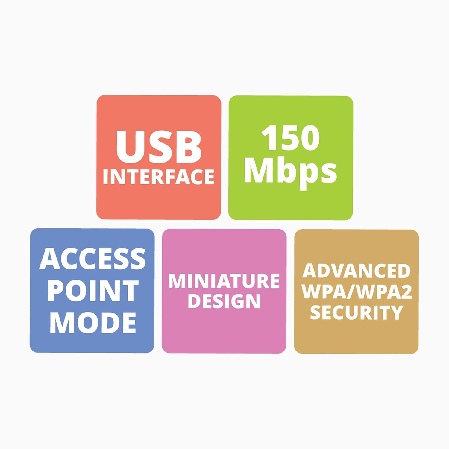 ZEB-USB150WF1 is a mini Wi-Fi adapter that supports 150 Mbps wireless data transmission rate and is fully compliant with USB v2.0 High-speed mode. It comes with advanced security WPA/WPA2 encryption standards.